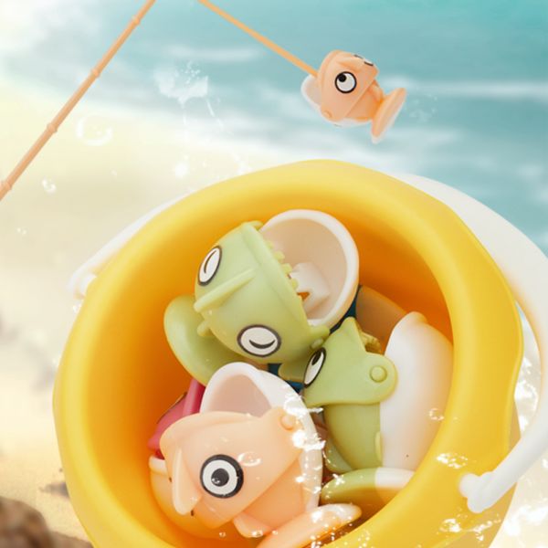 Ø 360 degrees rotating fishing plate, 4 small buckets, 4 fishing poles, and catchy music.